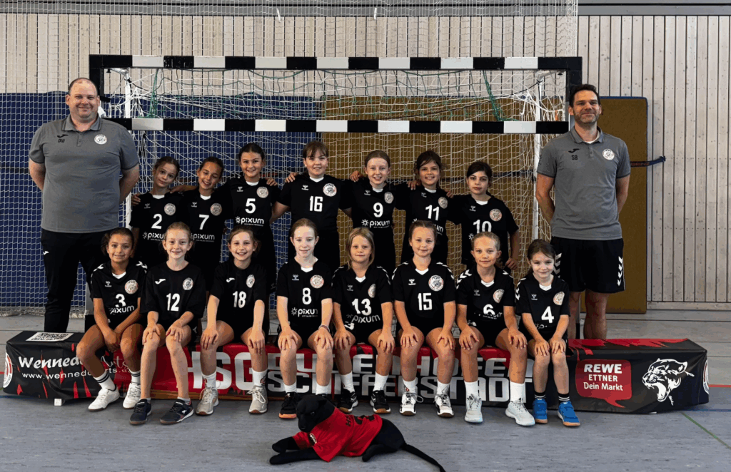 Hintere Reihe: Dominic Wenzel(Trainer), Elira Hajrizi, Mila Branco dos Santos, Elena Krohn, Mia Fittler, Nele Richert, Emma Hübener, Juliana Eckert, Sebastian Balbach (Co-Trainer)
